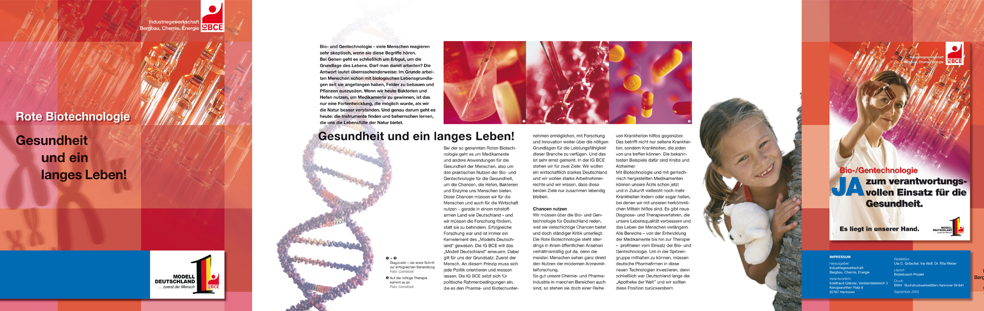 Alte Tätigkeiten sind dadurch nicht mehr gefragt, stattdessen entwickeln sich besonders in den Bereichen moderne Biotechnologie völlig neue, zukunftsfähige Berufsbilder. Die IG BCE möchte bestehende und potenzielle neue Mitglieder über diese Entwicklung aufklären. Gleichzeitig soll eine Lanze für diese Technologien gebrochen werden, die durch starke einseitige Lobbyarbeit ein eher negatives Image in der breiten Öffentlichkeit haben.